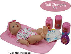 Young caregivers will love this complete set of Baby Doll Accessories to "parent" their first baby dolls! Children can attach the Doll bib and feed their babies with bottles, spoon, spork, divided dish, Use the Doll Pampers to clean up your doll and when ready use the Doll Training Potty to toilet train your doll. A Doll Pacifier and other Baby Doll Accessories are also included. When finished playing kids can easily store all pieces in the provide easy zip close storage bag. This complete doll care set makes it easy to keep a pretend nursery well-stocked and organized, while promoting language, imaginative and pretend play, and encouraging young kids to develop nurturing skills