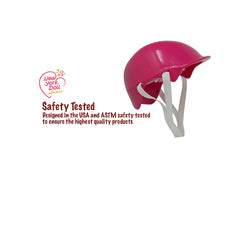 Make sure you doll is well protected with her very own helmet. Whether on a bike ride in her Ride Along Dolly Bike Seat, or ice skating, roller skating, scooting or more, this essential doll helmet is a must have for any American Girl Sized Doll. Manufactured by The New York Doll Collection, a Modern Company for Dolls and Kids.