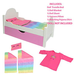 - DOLL TRUNDLE BED includes a Doll bedding set: comforter, pillow and mattress. sewn with precision