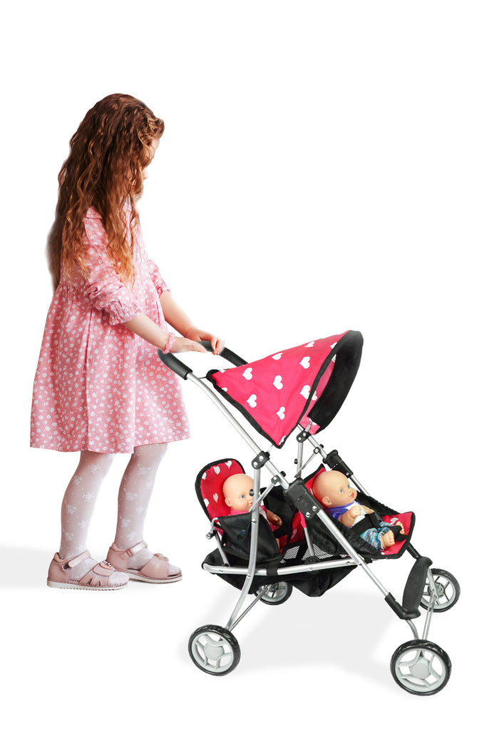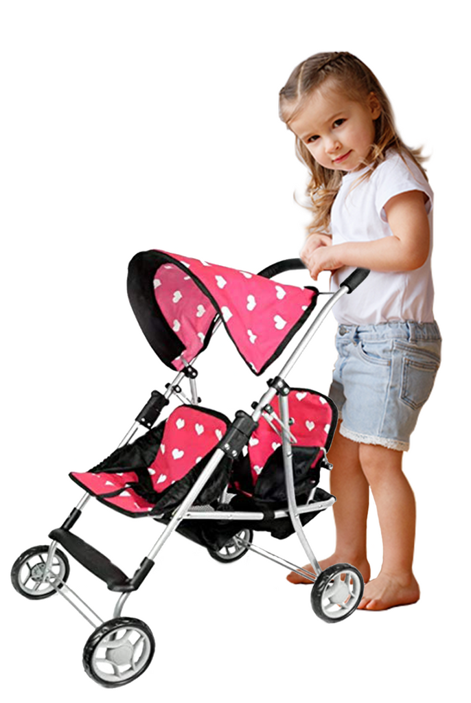 Super Cute twin pink a Baby Doll Stroller are especially designed for your 18 inch Doll to Push Around and feel like a big girl. Let your Dolly have some fun while pushing her own baby stroller! Your little one will get heaps of attention while strolling her dolls. Little ones will love taking their favorite doll for a stroll that will Encourage them to research and think about their learning. This Lightweight Stroller is perfect for growing imagination & creativity. The modern and unique design features of the baby doll stroller allow your child to secure and transport his favorite dolls toys for hours of role playing fun.