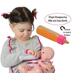 - 8 pc doll magic bottles feeding set includes 2 baby doll bottles with disappearing milk