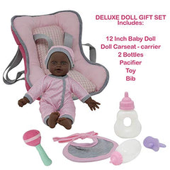 DOLL CAR SEAT AND CARRIER - This Baby Doll Playset is a great gift for toddler, girls and kids EFFECTIVE CHILD DEVELOPMENT – Develop your child’s imagination and Introduce them to dolls so they can learn how to engage with babies properly to help them role-play, nurture, love, and care. The Dolls clothing can easily be changed helping young ones develop fine motor skills. Every Kid, toddler or preschooler, would love to hold, cuddle, and hug a soft baby doll. Take along your doll on the road. Great Travel Toy for KIds. Doll car seat can also be carried as a baby doll carrier on the go. Includes Doll Toy Accessories and 2 Baby Doll Bottles.
