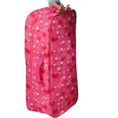 This Doll Travel Case Suitcase Storage Carrier Bag is the perfect case to store your American Girl Doll or any 18 inch doll. This is one of the must have accessories while on the go! Doll Travel Case Suitcase features: - Inside the case there are hook-and-loop-tape straps to keep the doll safe and in place. - The inside of the case also has 2 elasticized mesh pockets to hold small items. - It has a top carry handle and a side carry handle for easy carrying when on the go. - For better quality it has a double zipper closure. - In front of the case there is a name tag pocket. Sturdy and well constructed, it's the ideal Doll Carry Case.