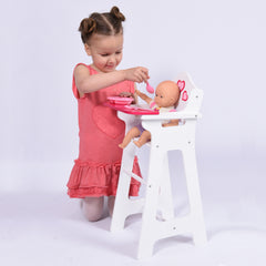 - Our Wooden Doll High Chair in white finish is a great gift for young girls who love “playing mommy” with their favorite dolls