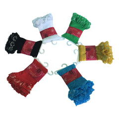 - Package Includes: White, Black, Red, Green, Gold, and Blue ruffled leggings.