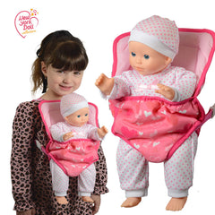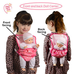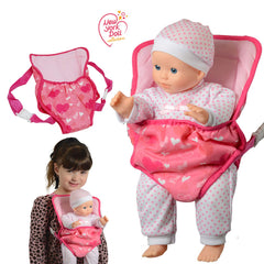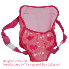 This bright and fun Heart Designed baby Doll carrier is perfect for mini mommies on the go! This is dual purpose carrier allows little ones to tote their dolls in the front or back! It features two adjustable vertical straps and a elastic in the back to accommodate various sizes of dolls. The New York Doll Collection Carrier easily fits most 13 inch- 20 inch Dolls! Baby Doll Carrier Features: - Can be worn front and back - Fits most 13 inch to 20 inch dolls - Cute pink heart design - Adjustable straps to fit little mommy! - Expanding Elastic pocket to ensure a good hold on the dolls - Easy for child to put on and take off - Perfect for Baby Alive dolls and other dolls This doll carrier is the perfect gift for any little girl. Great gift idea for Birthdays, Holidays, Christmas and any and all occasions. This toy passed all safety tests and is fun and safe to play with. Satisfaction guaranteed!