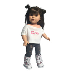 Trendy Styles for your dolls... Give your doll a Hip, Modern fashion look with these crop tops The fashion combinations are endless for your 18 inch doll with this set of 5 printed t-shirts! A variety of shirts lets your kid be creative to pair it up with any other outfit they own. They can mix n match or wear plain. Kids love this set as it can be used for any occasion.