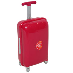- Doll Suitcase for 18 inch doll has Swivel Wheels, and an adjustable handle that goes up & down. The Handle has a strong rubber attachment for the dolls hand.