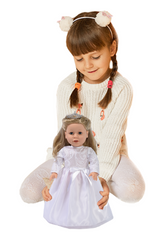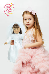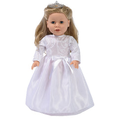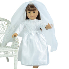 Add a dose of sweet romantic style to the doll wardrobe with this classic bride ensemble, complete with flowing gown, veil and shimmering tiara. Made by the New York Doll Collection offering a modern selection of 18" Dolls, Clothing, Furniture and Accessories.